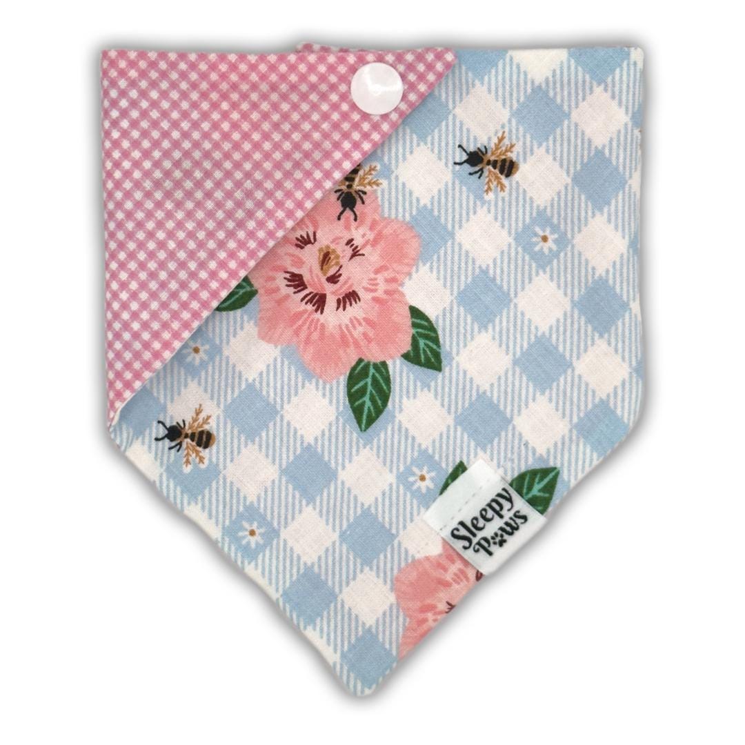 Pink Floral Flower on Gingham Bandana