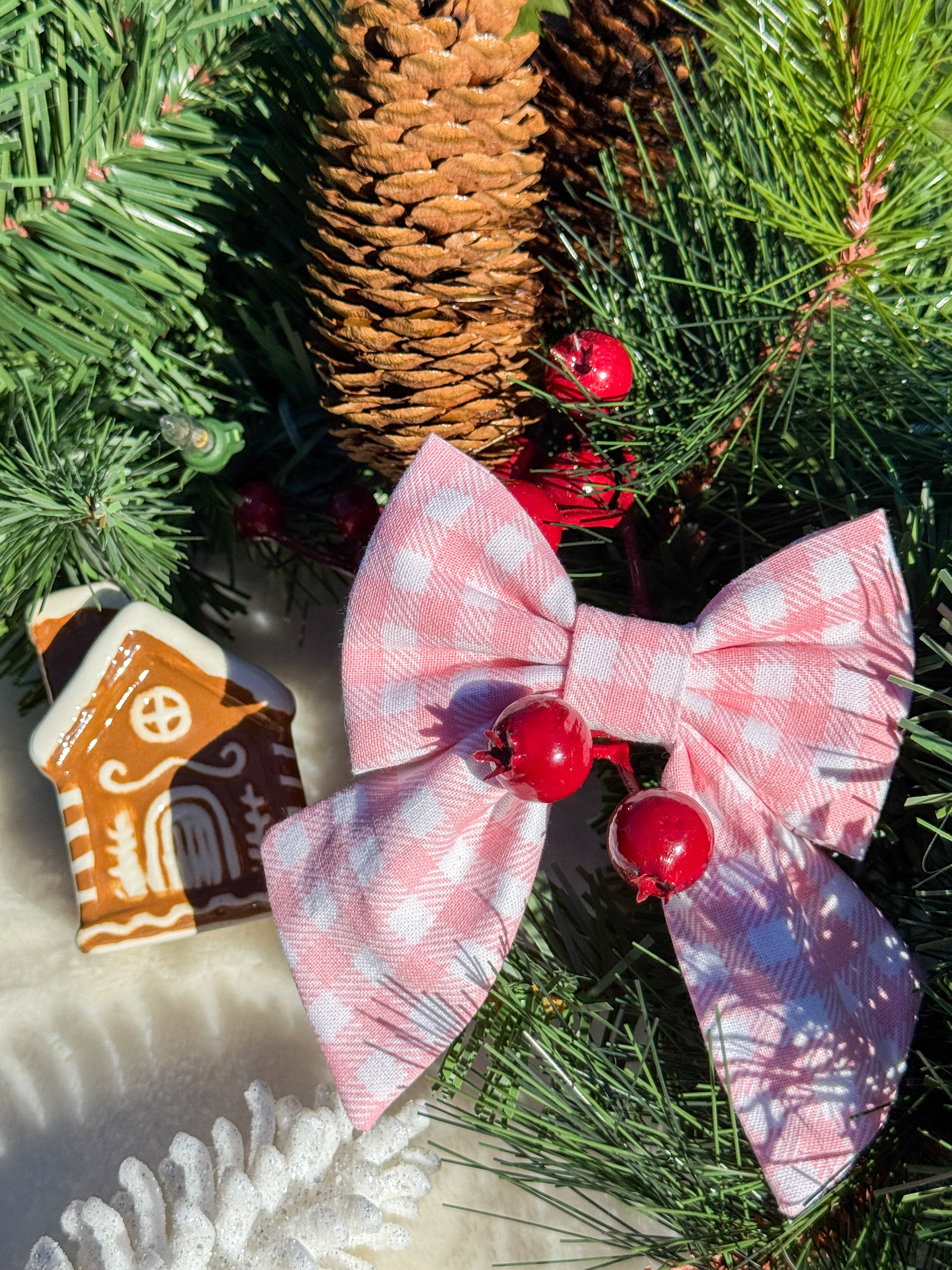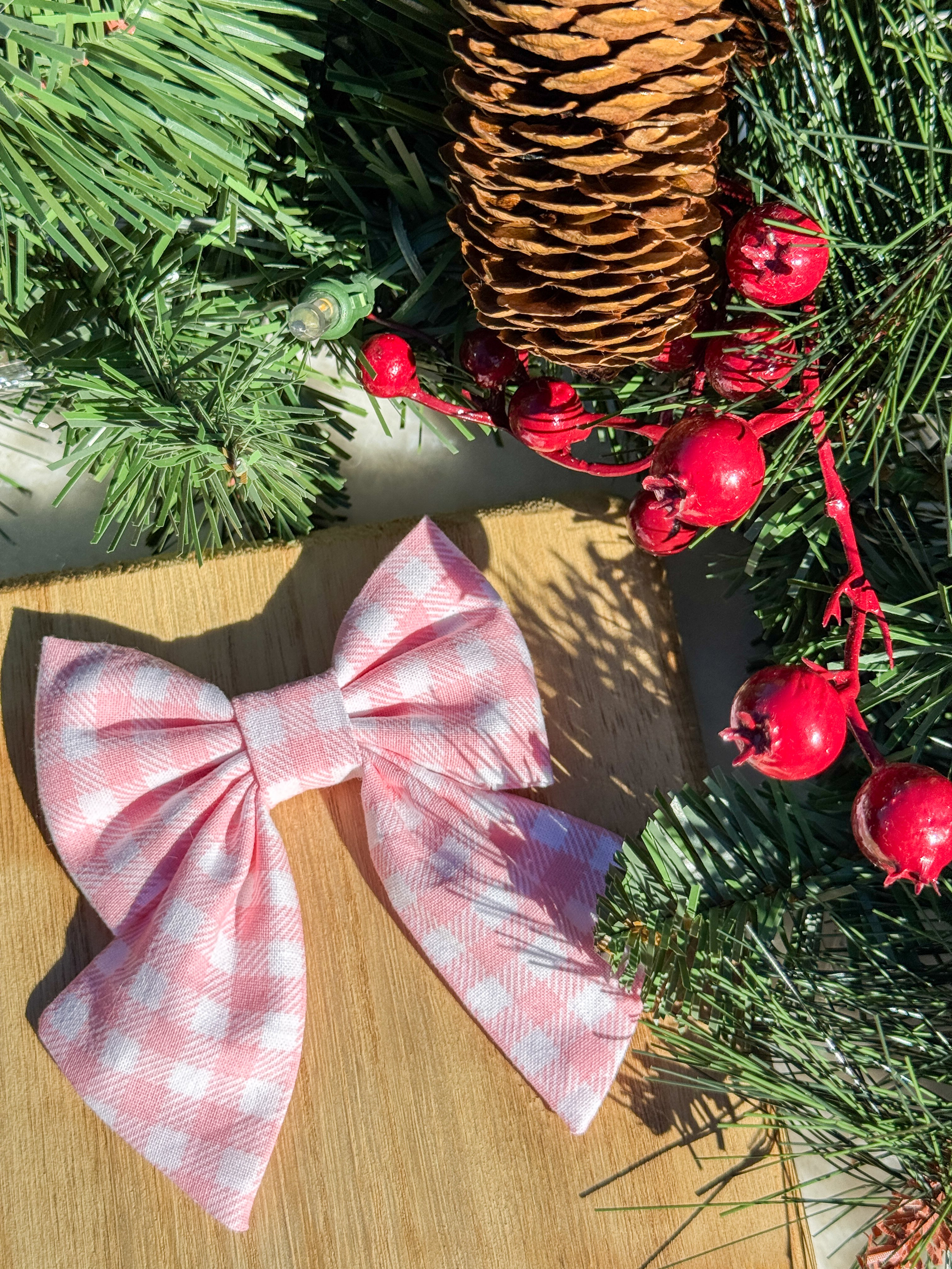 Pink Peppermint Gingham Sailor Bow